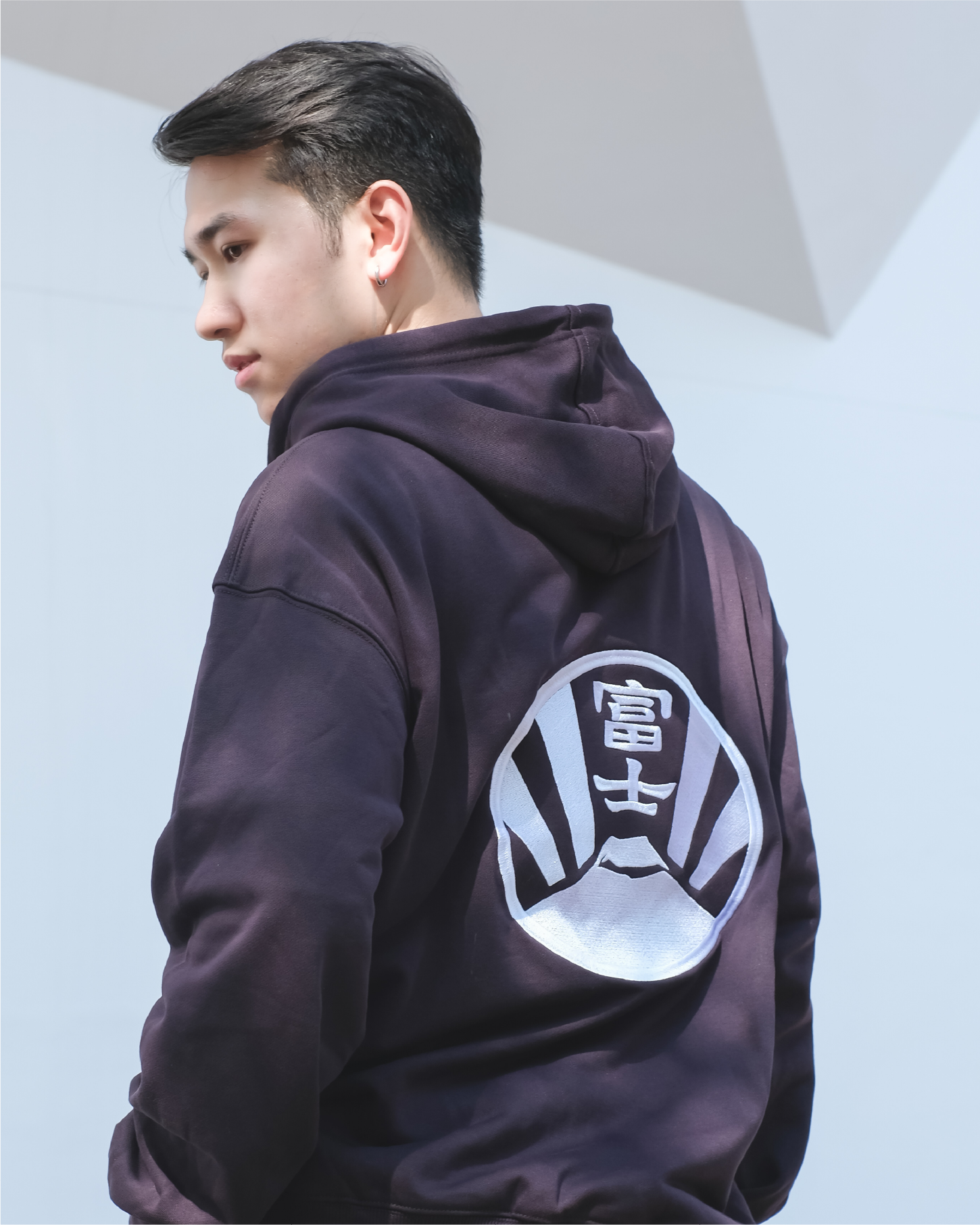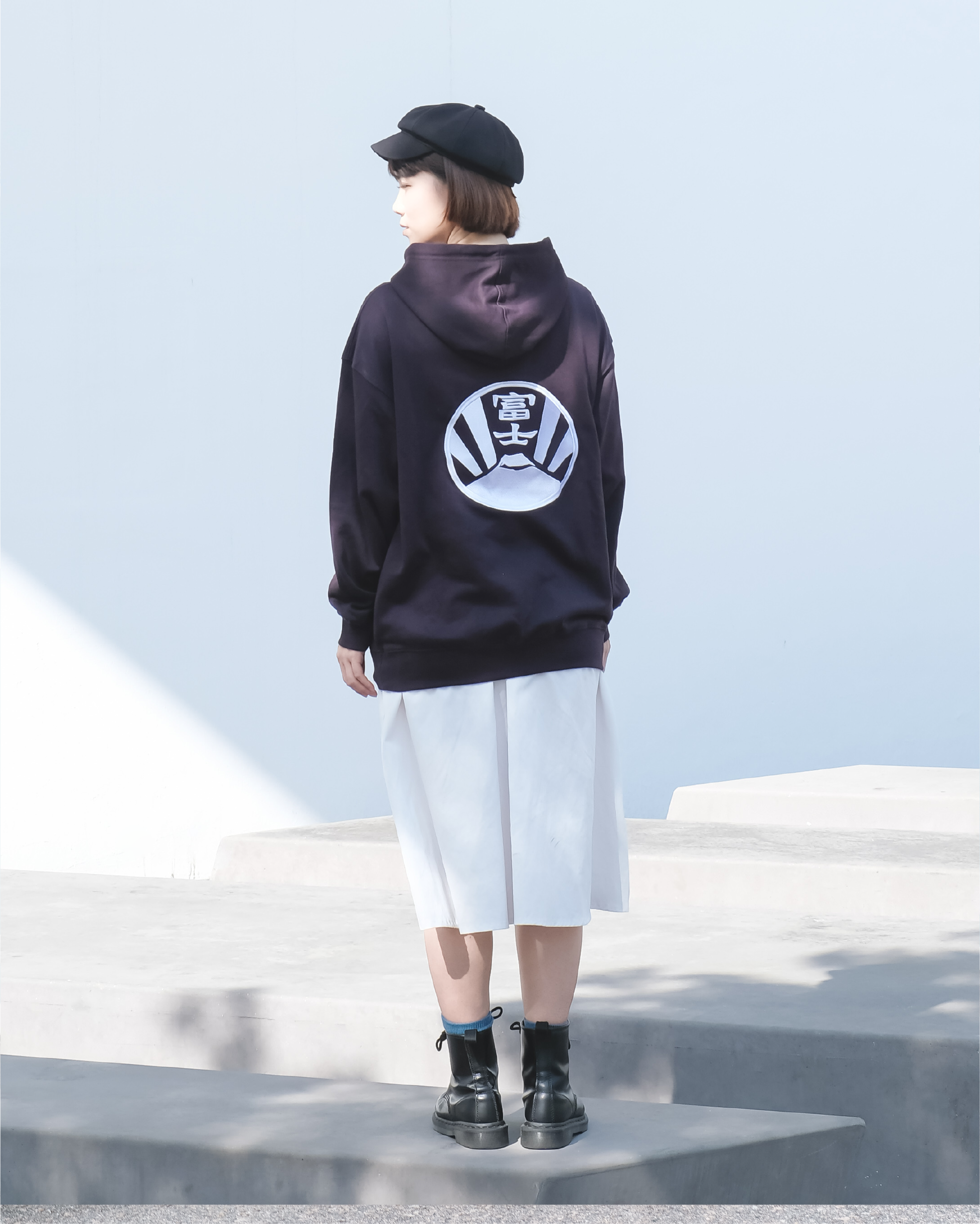 陽光明媚的日子著正,富士山背後徐徐升起的紅日,金光燦爛的晨曦灑滿獅子山,家紋衛衣上的紅黃擴展,如紅日、如晨曦、帶來希望之光。