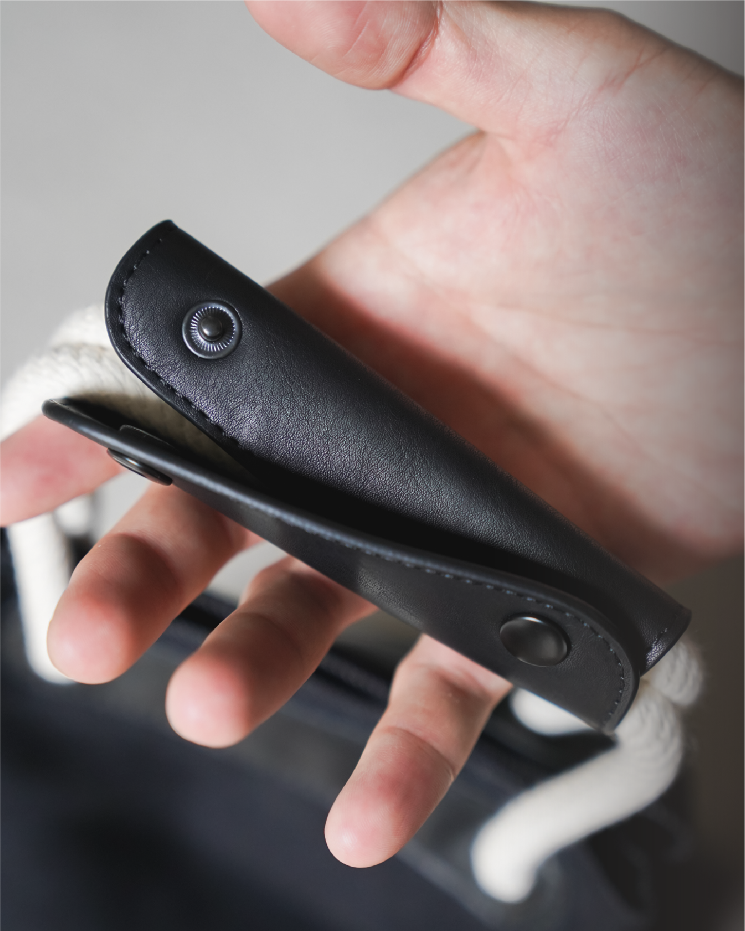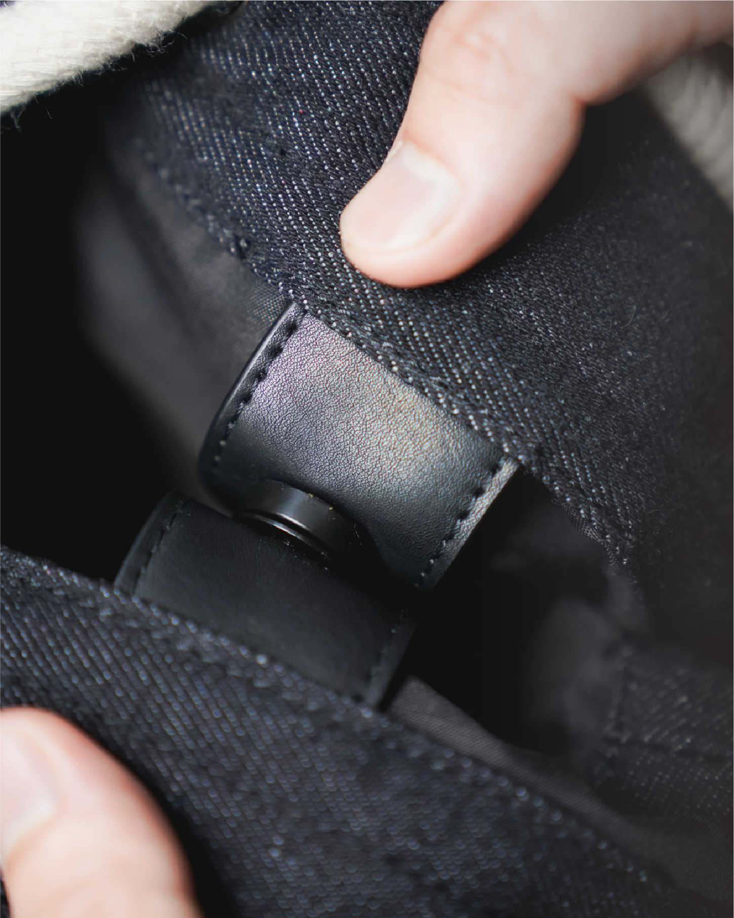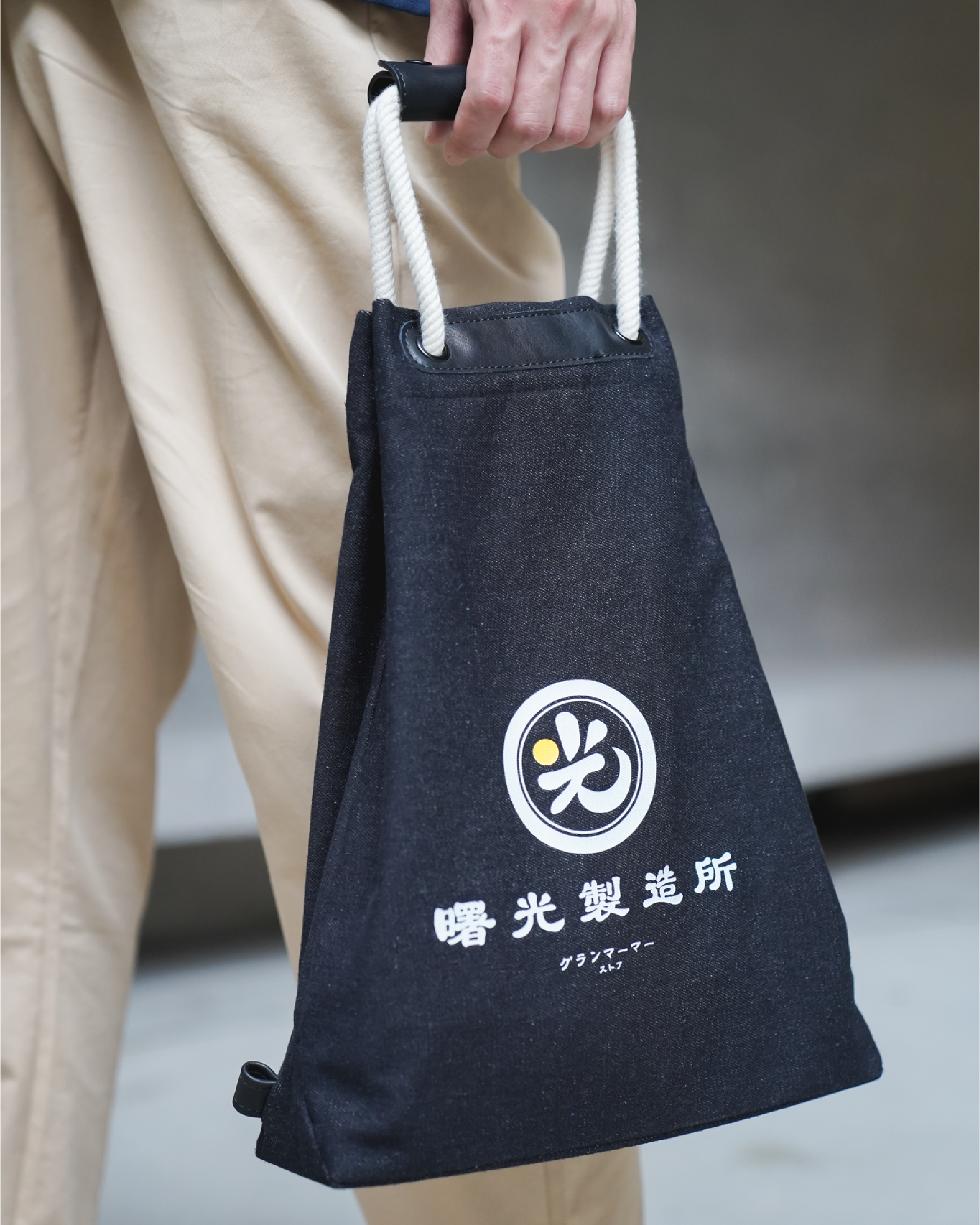 這款做舊水洗高級牛仔布的顏色會隨著主人的穿著體驗而變化,年復一年,越穿越有味道。搭配米白色棉繩和黑色防水耐用的PU皮革,不易變形膨脹,整體設計更顯高貴氣質。