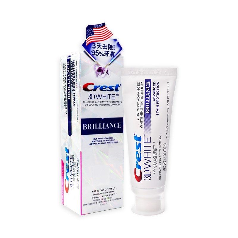 Crest專業鑽白牙膏分為兩款,這款鑽白炫亮款口味清爽,擁有熱感去漬科技,幫助清除頑固附著在牙齒表面的茶漬與咖啡漬。採用美國工藝技術,打破累積在牙漬鏈結,同時在牙齒表面形成保護層,降低牙漬再次附上的機率~這款在模特界十分出名,所以在價錢上也當然算是牙膏界的超模啦,所以也需要考慮考慮呢!還有需要注意的是它是少量美白牙膏中擁有發泡劑的,所以使用時容易被泡泡誤導喔~