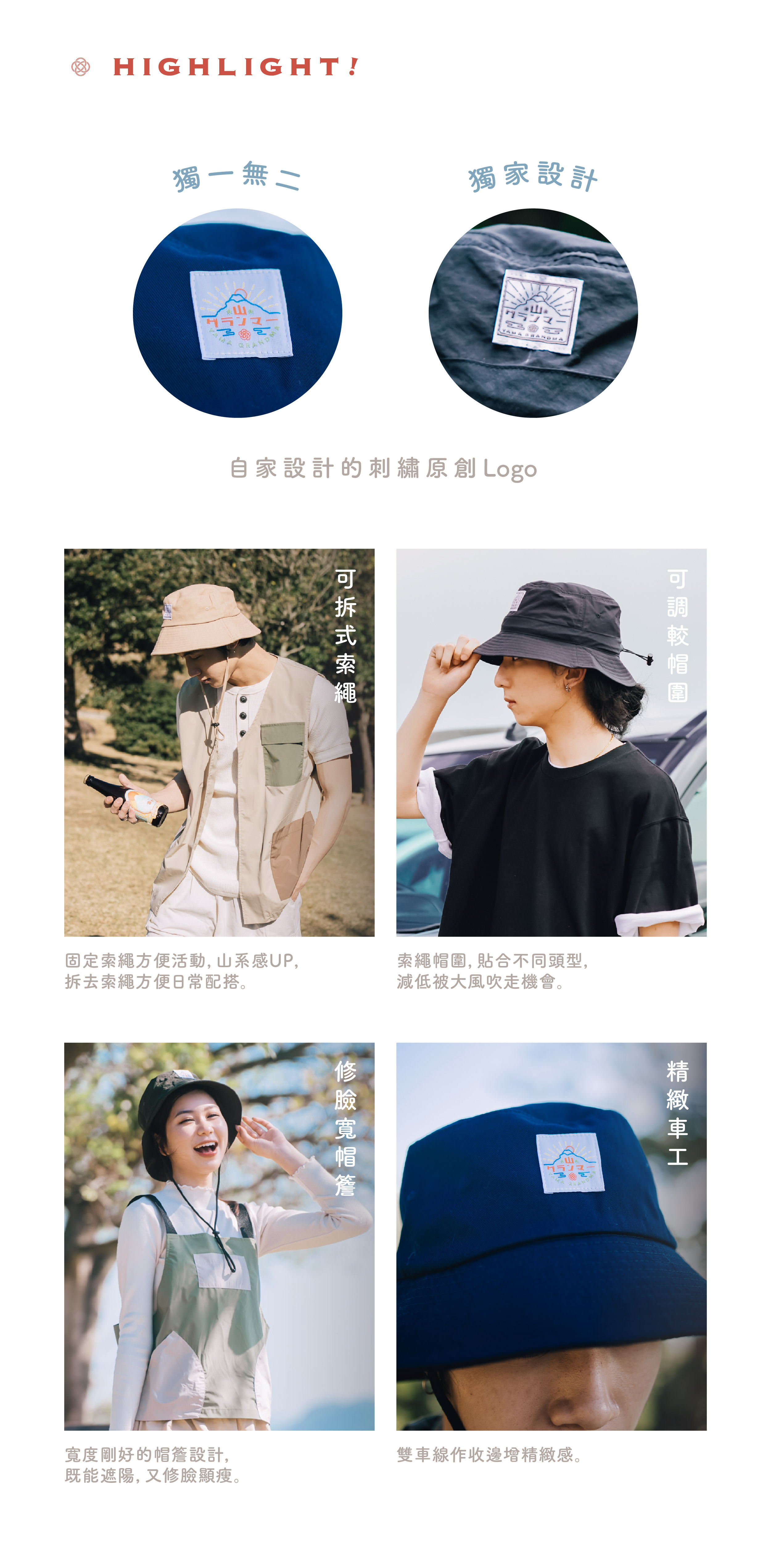 【香港原創設計|YamaGrandma 山系工裝漁夫帽(跣水質/棉質)】