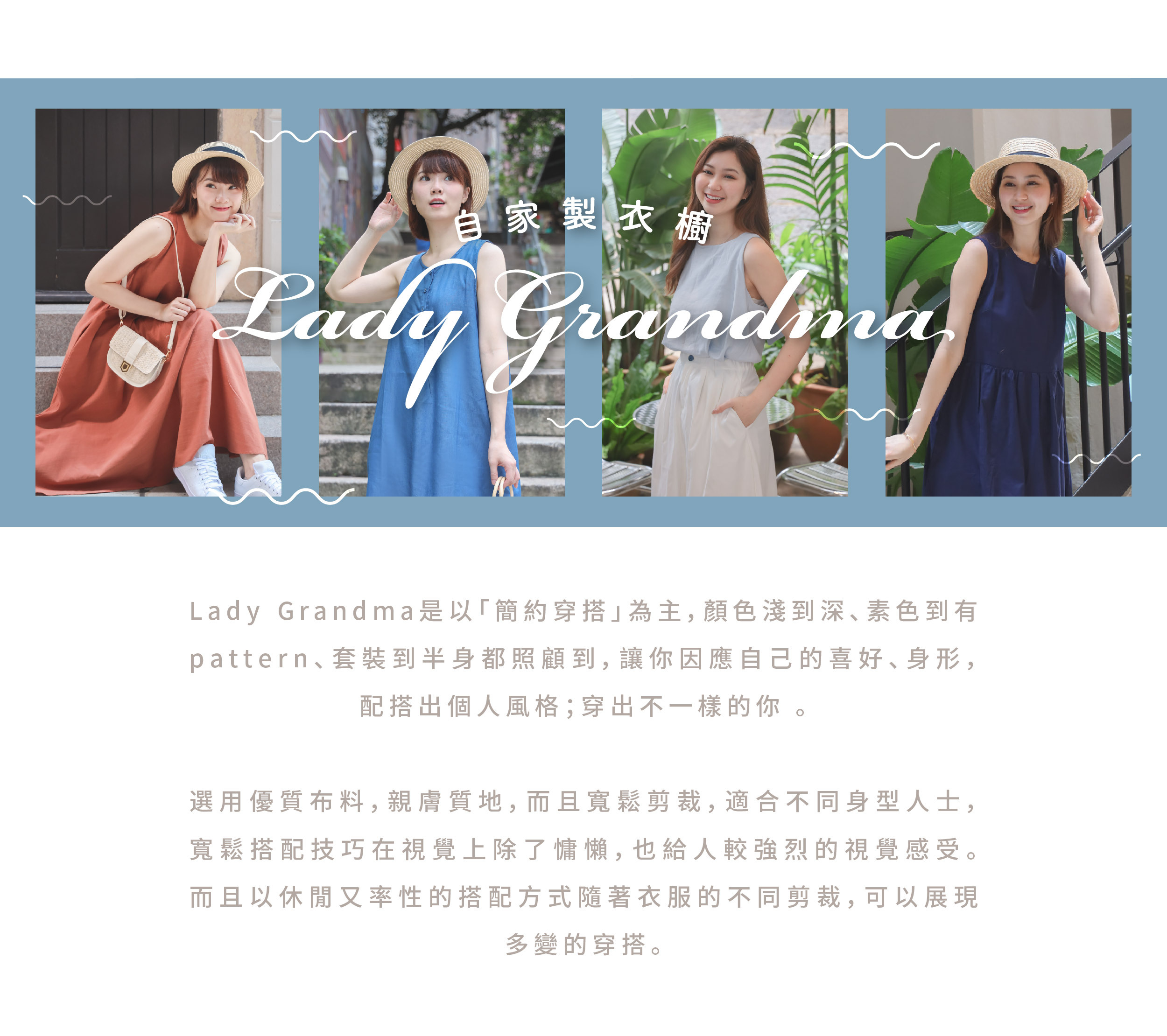 Lady Grandma是以「簡約穿搭」為主,顏色淺到深、素色到有pattern、套裝到半身都照顧到,讓你因應自己的喜好、身形,配搭出個人風格;穿出不一樣的你 。