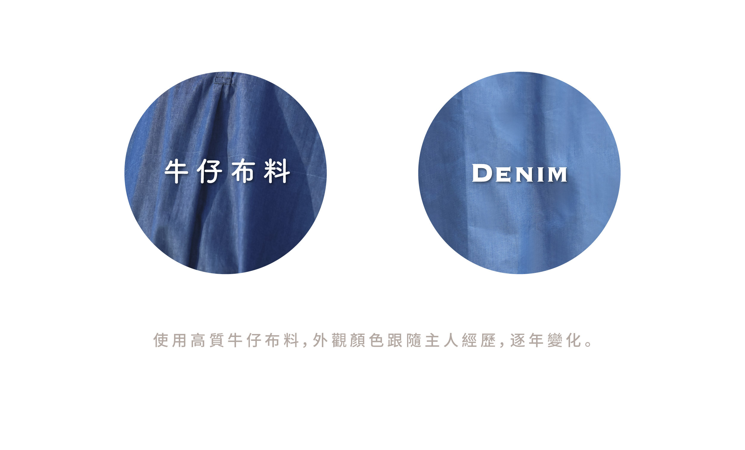 使用高質牛仔布,外觀顏色跟隨主人經歷,逐年變化。