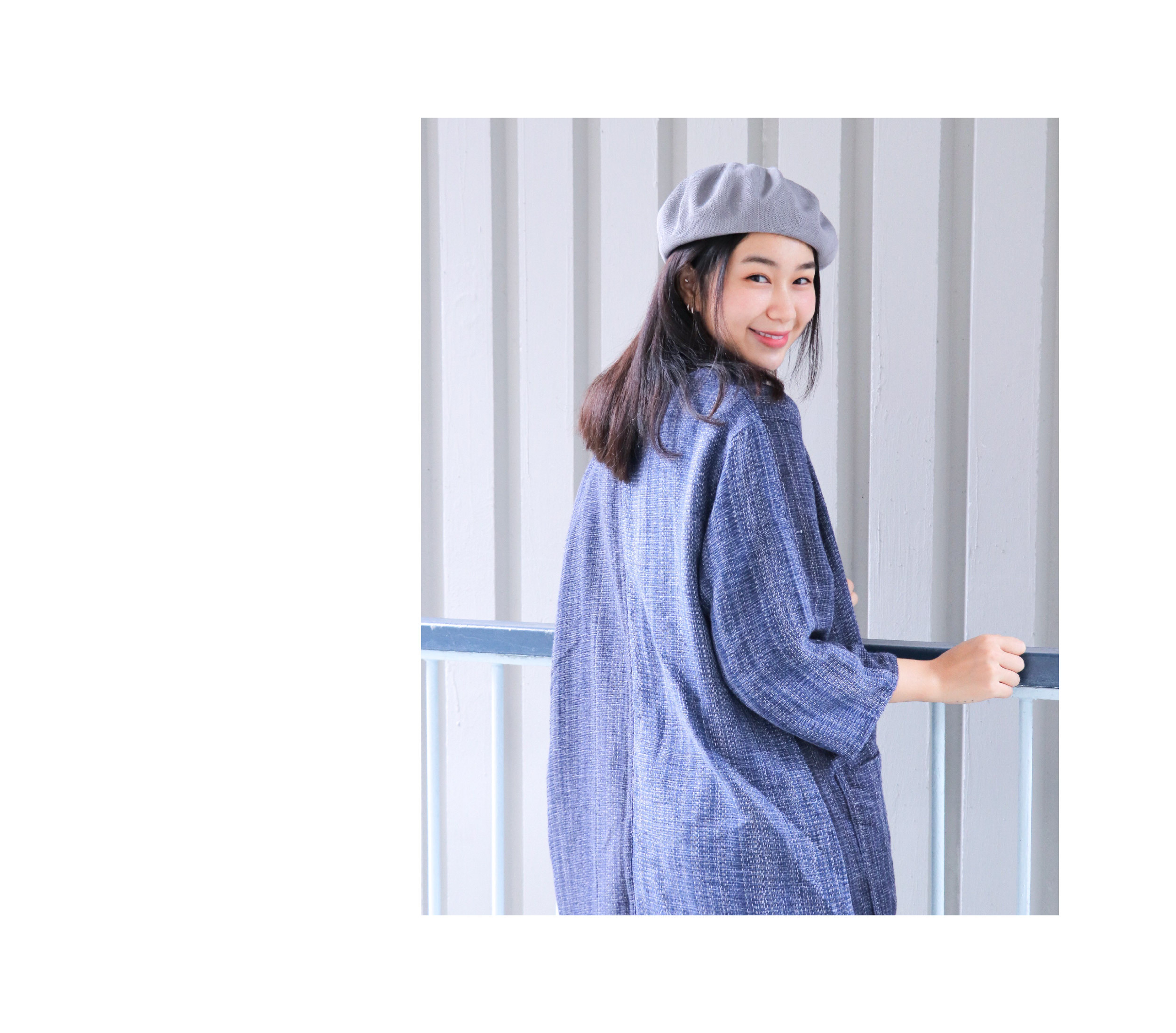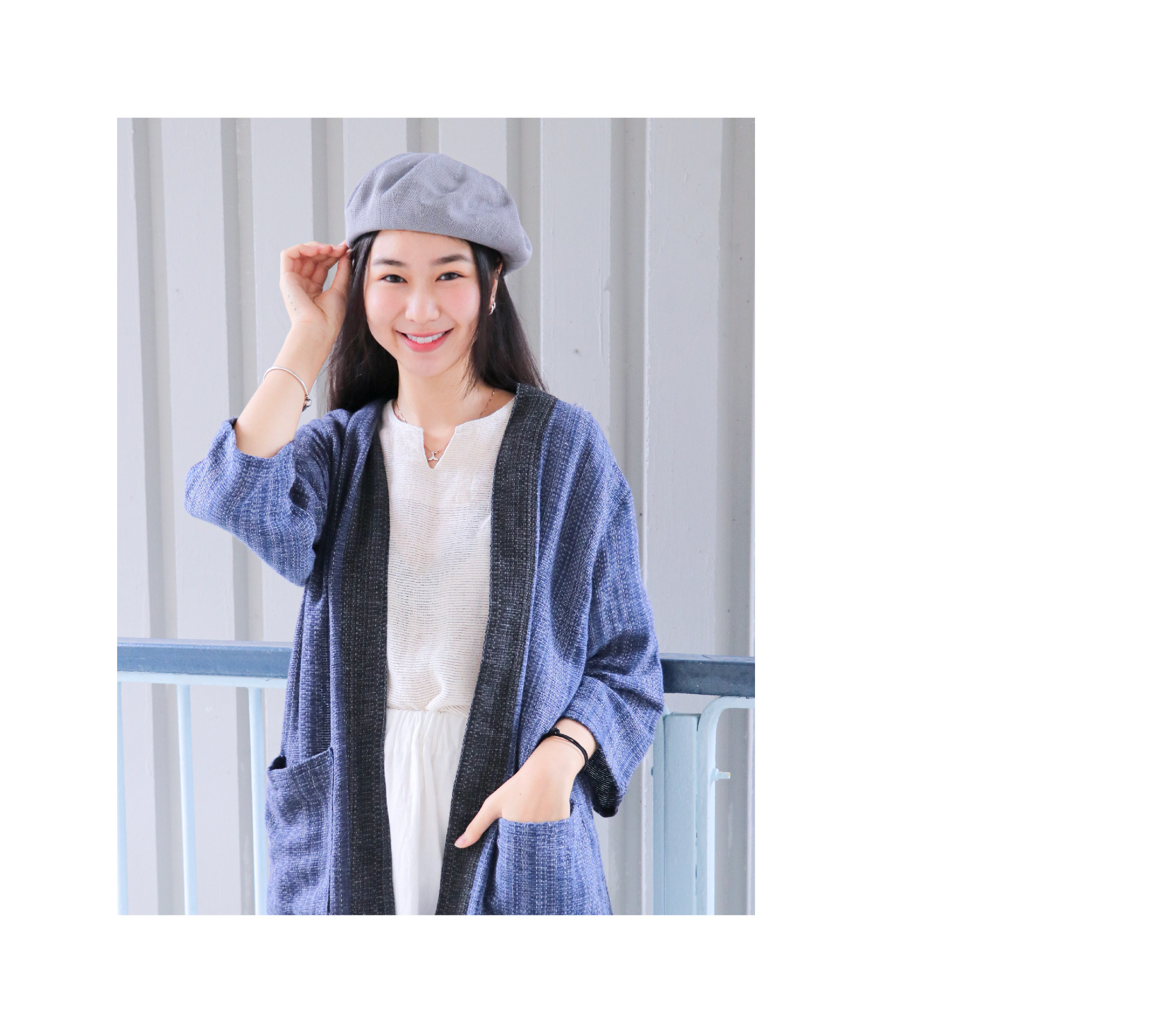 .疏鬆的織法使棉質外套在夏天穿著也分外通爽 The loose weave makes the cotton coat extra cool in summer