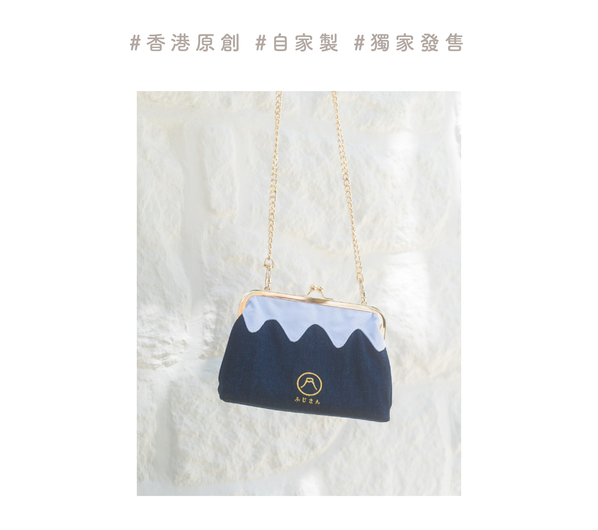 The snow-white fabric separates the peaks of Mount Fuji with curved lines. Imagine taking a pocket gold bag made by grandmama, walking slowly on the Mount Fuji road, enjoying the scenery along the road, and creating memories.