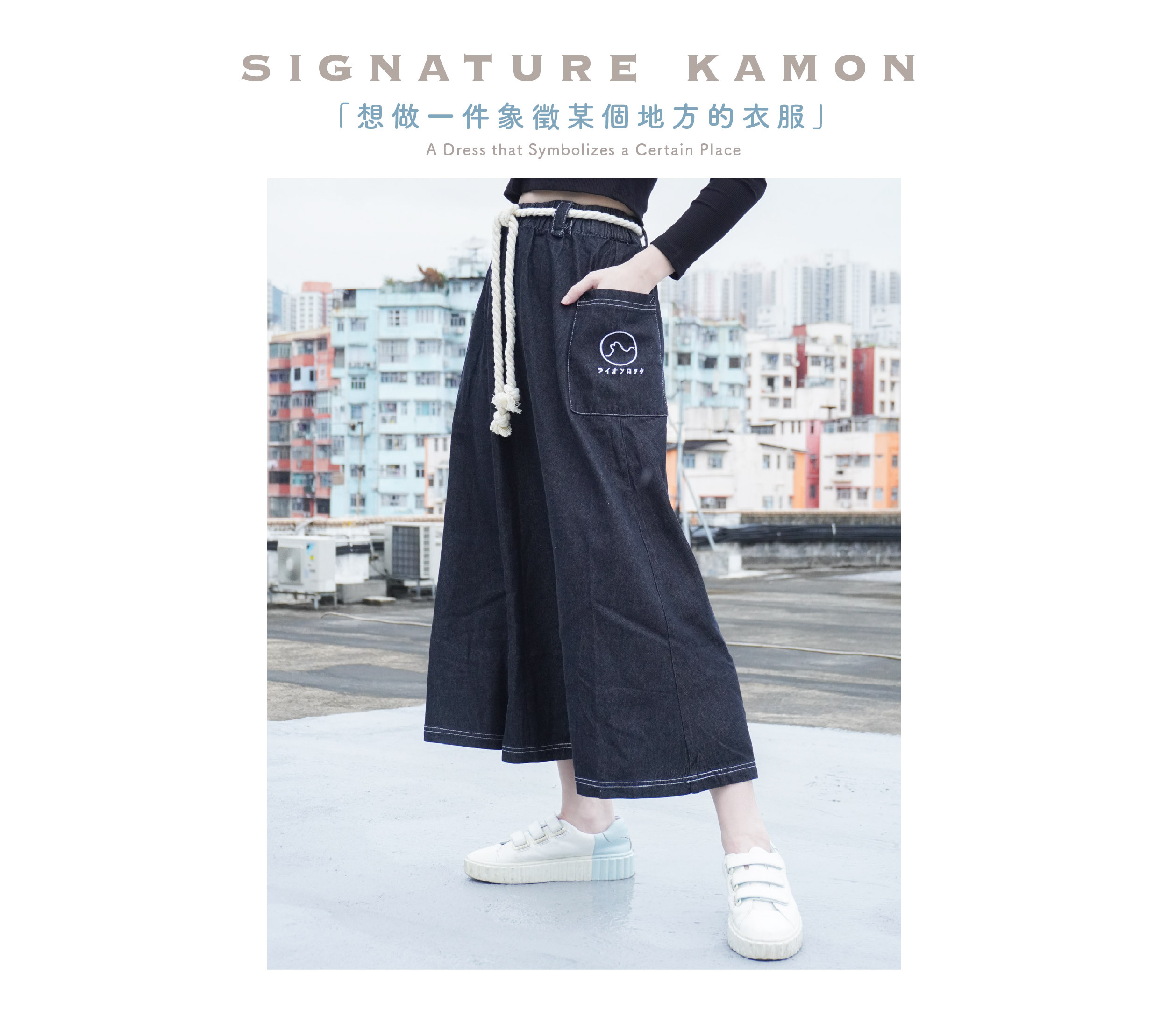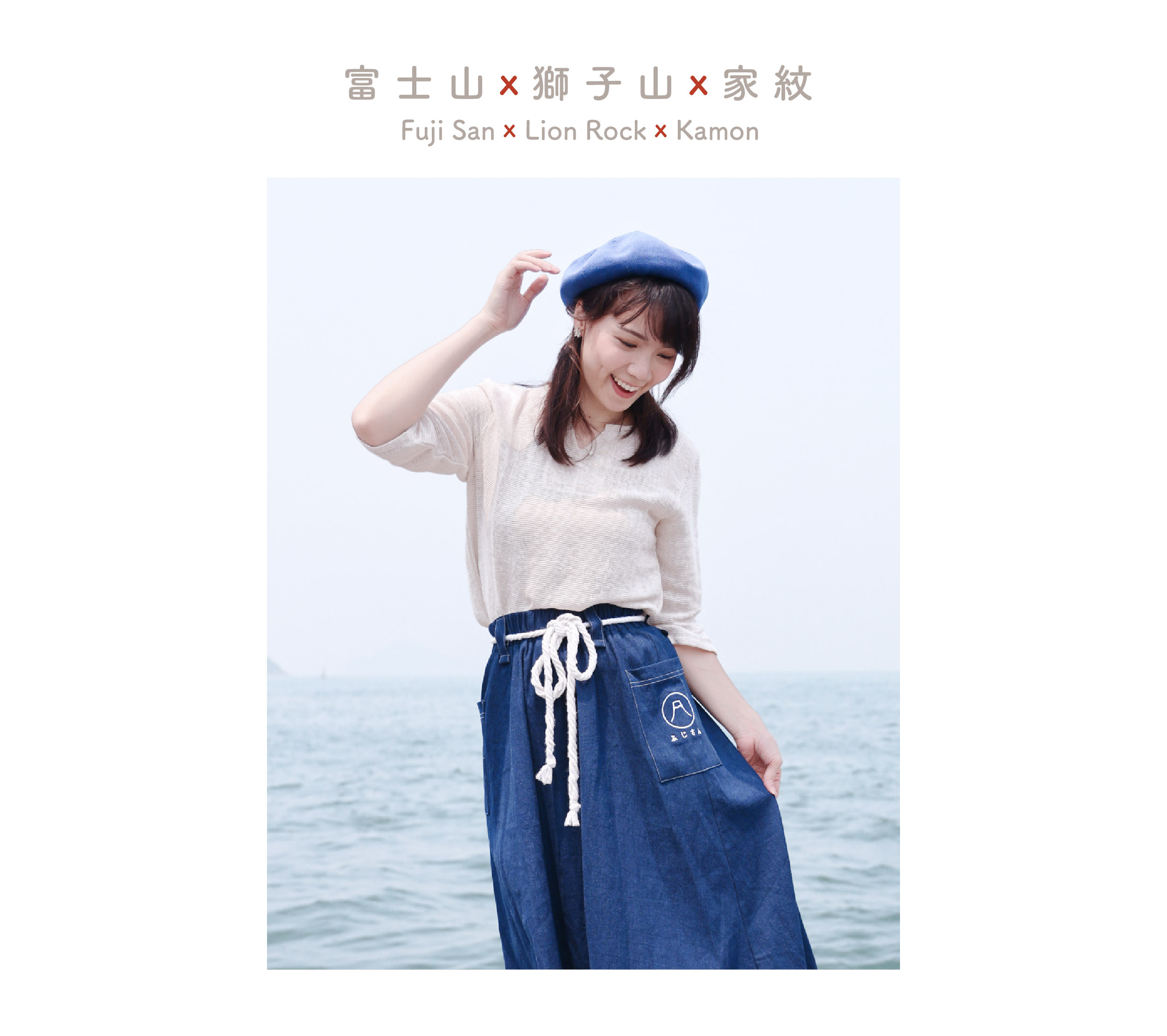 Kamon家紋是家徽的意思,是日本貴族門弟為表示自己的持有物而標上的記號,作為家族的象徵,之後演化成辨識個人身分之用。香港人以獅子山精神為記,同時,熱愛日本文化的我們,也對富士山的美念念不忘。這次的家紋系列,分別用上獅子山及富士山作為我們的「家徽」,配以優質牛仔布料,剪裁成我們的自家制產品- 家紋牛仔傘裙。