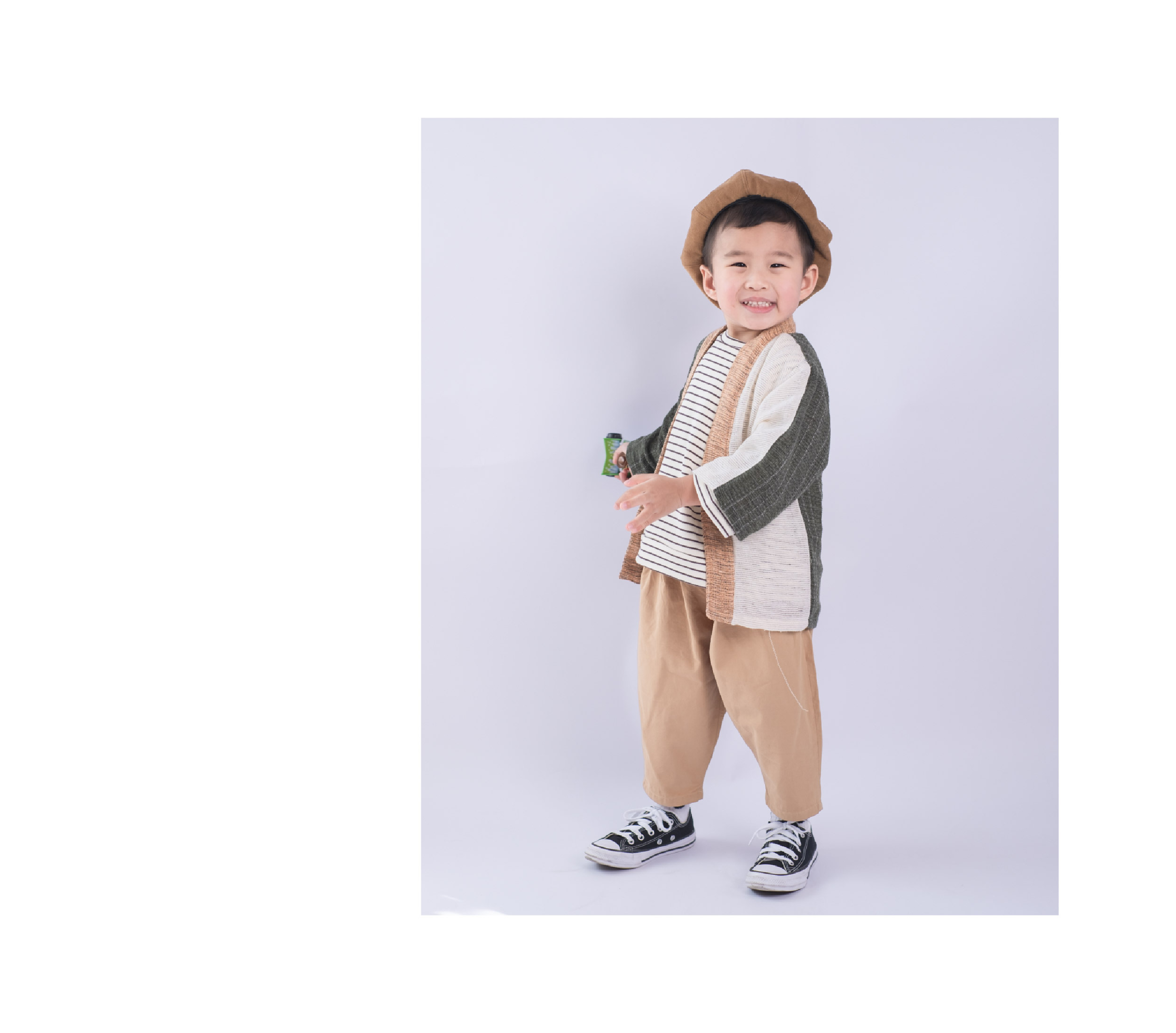 Grandmama launches a series of Handmade Kids Kimono, injecting children's vitality into each finished product and witnessing their growth at the same time. The Kimono is made by twisting cotton into threads with left hand, then woven into pieces of fabric on a loom with right hand. The unique combination of multi-colour threads form a mixed-colour cotton fabric, and its loose weave makes you feel extra cool in summer and very suitable in winter. Each child is precious, just as the colour of each thread varies slightly depending on the angle or speed of twisting. Grandmama hopes to pass on the love of her family through the warmth of her handiwork.