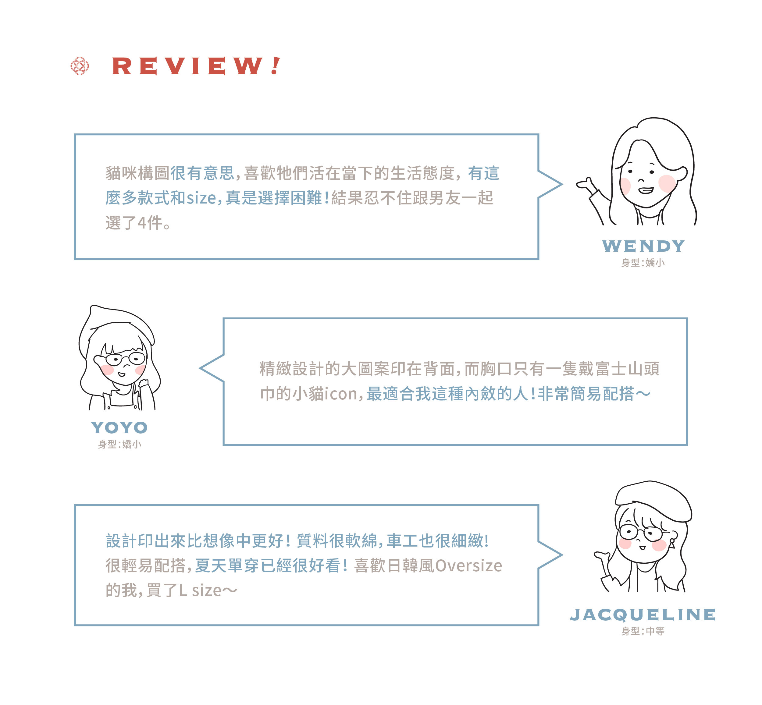 .設5個尺碼,適合不同身型人士