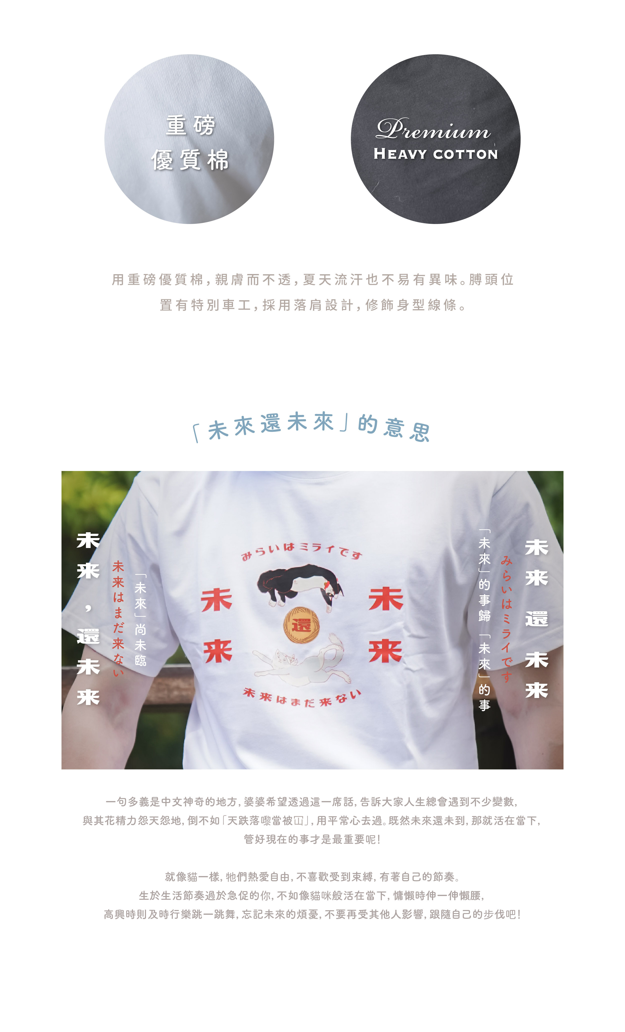 貓の哲學Tee是婆婆自家設計的原創Graphic,生於生活節奏過於急促的你,不如像貓咪般活在當下,慵懶時伸一伸懶腰,高興時則及時行樂跳一跳舞,忘記未來的煩憂!