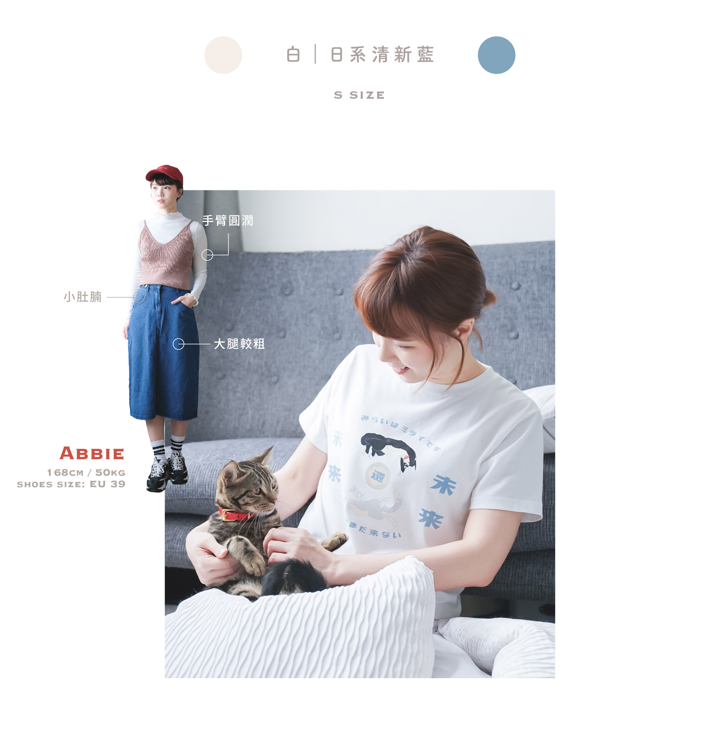 《慵懶貓·未來還未來》 - 白 | 朝氣藍 Tee T-shirt